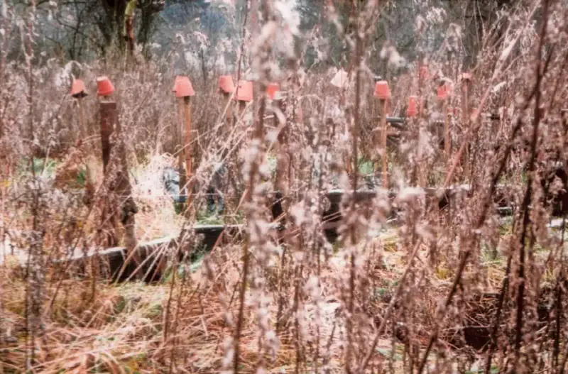 Diese Landartinstallation stammt von Uli Höller. Ich habe sie im Morgendunst fotografiert.